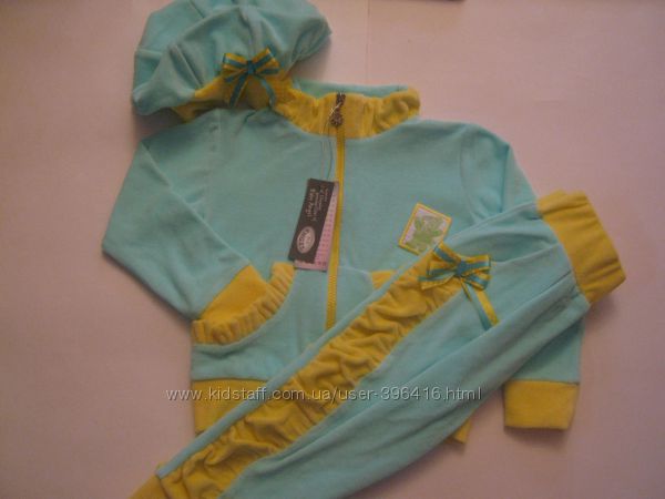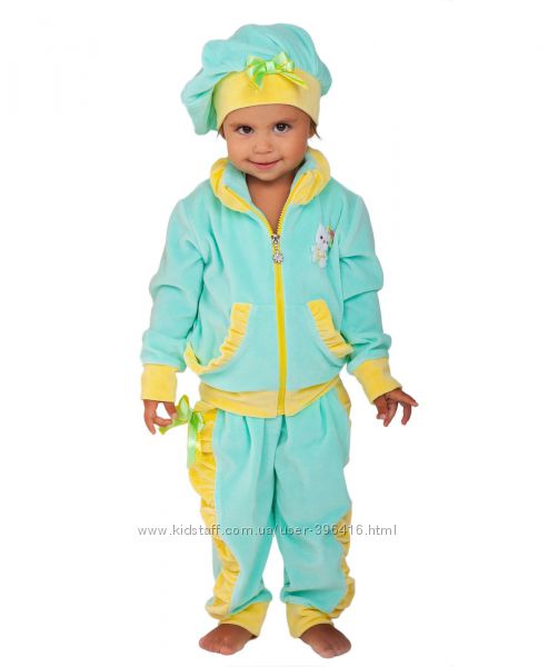Костюм м 463: кофта+штаны+берет, велюр, девочка.