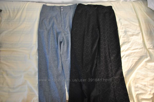 Продаю свои брюки. т.к. поправилась. В отличном состоянии, без пятен и дырок.Фото 1-2 - серые - ткань тонкая типа костюмной, не колется. отличного качества, немного стрейч (бирок нет) ПОТ 36см. высокая талия, ПОБ 51см, длина на боковому шву 105см (есть подгиб примерно 3см), по внутреннему 74см. половика ширины внизу 21см ЦЕНА 140 гривен Фото 3-4 - чёрные. ткань вечерняя, приятная к телу 48% polyester, 46% viscose, 6% elastane. (Румыния) написан р-р12US Дефектов нет, (перешивала сама немного по швам-ушивала) ПОТ 35-36см, ПОБ 51см, длина по наружному шву 96см, про внутреннему 71см. ЦЕНА 90 гривен