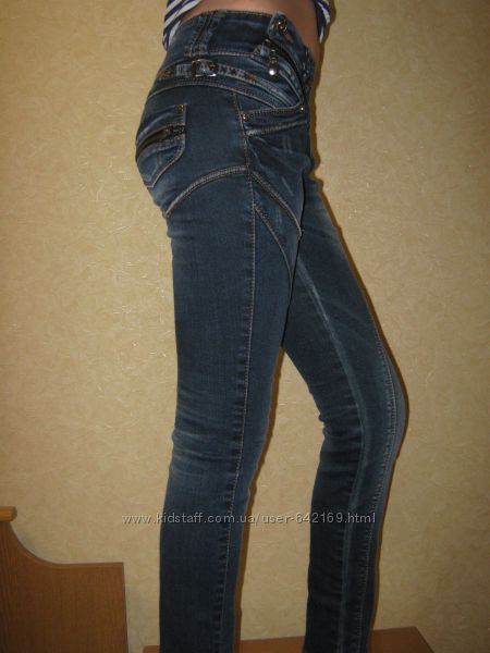 Очень красивые джинсы 21 размера в хорошем состоянии ,необычный крой , ткань немного тянется ,подойдут на худенькую девочку. Замеры: