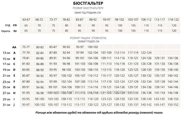 | Обхват под грудью | 75 , 80, 85, 90, 95 |