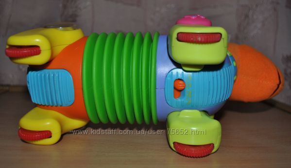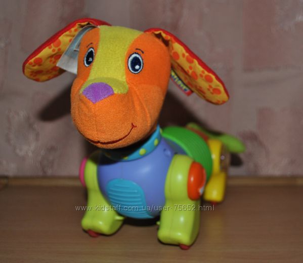 Специалисты считают, что ребенок должен непременно освоить ползать. Это укрепит его мышцы и подготовит их к ходьбе. Поэтому игрушка, стимулирующая карапуза двигаться, будет как нельзя кстати. Щенок напевает веселую мелодию и спешит вперед (если немного повернуть тельце, будет двигаться по кругу). Когда карапуз догонит его, в награду услышит задорную песенку.