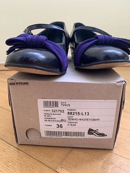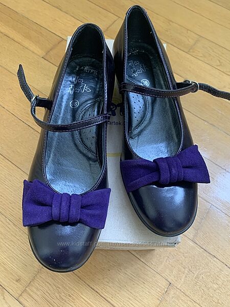 Туфли для девочки Бартек, (Польша) школьные. Кожаные, темно-фиолетовые, внутри кожа, супинатор. Размер 36, стелька 22,5 до загиба.Состояние идеальное.
