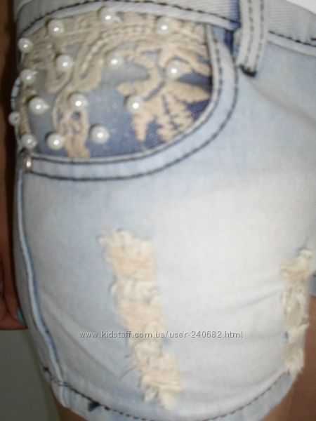Подробное описание: Интересные джинсовые шорты с кружевом и бусинками