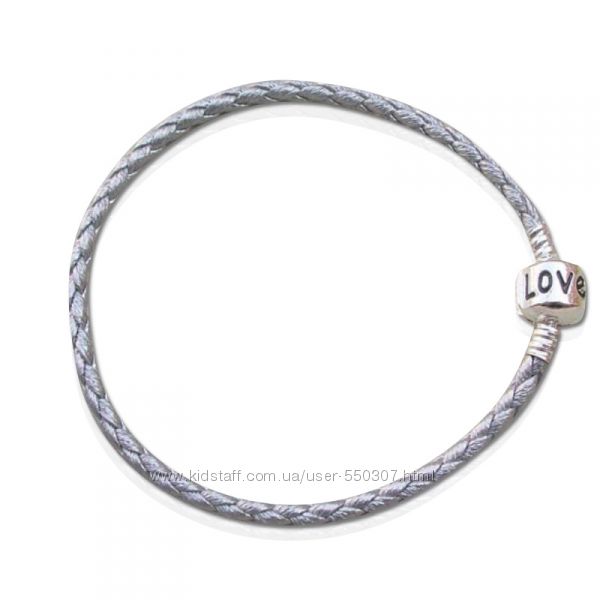 Браслет в стиле "Пандора" на застёжке, материал основы- кожзам, застежка- ювелирный сплав с надписью "LOVE". Вы можете дополнить его шармами по своему вкусу либо носить, как самостоятельное украшение.Длина 16, 17 ,18, 19 см.