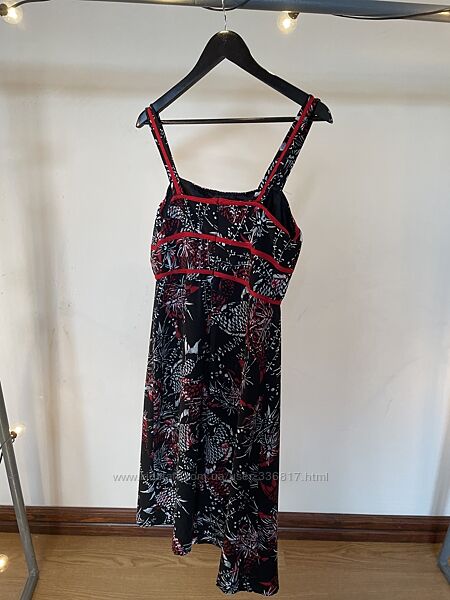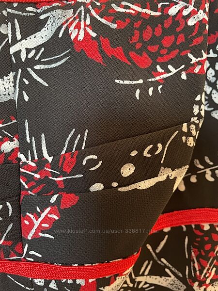 Плаття з білим та червоним візерунком з підкладкою на грудях, блискавка на спині, від грудей трішки розширене до низу- 200Тканина - 100% поліестер.