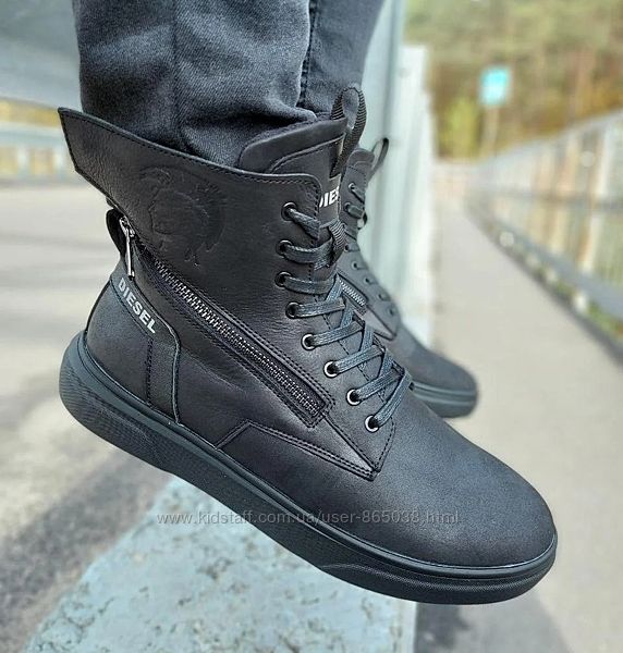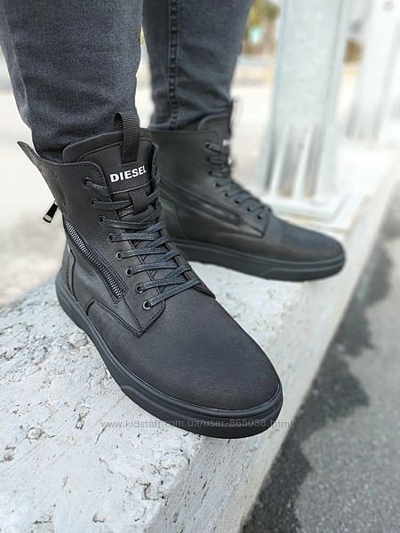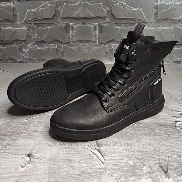 Кроссовки ботинки кожаные зимниеDiesel Black Wing