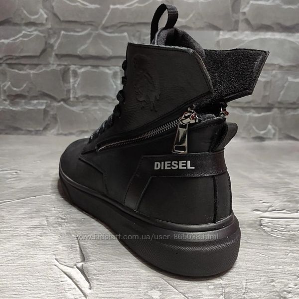 Подробное описание: Зимние кожаные кроссовки на меху Diesel Black Wing
