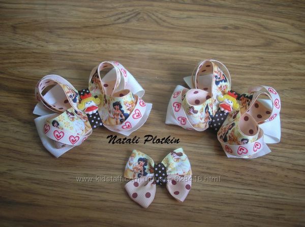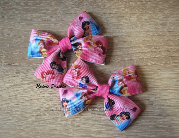 Очень нежные и нарядные бантики  с любимыми принцессамиУкрашения сделаны аккуратно, из качественного материала и, главное, с душой. Учту Ваши пожелания в цвете))