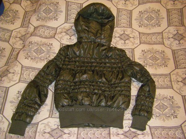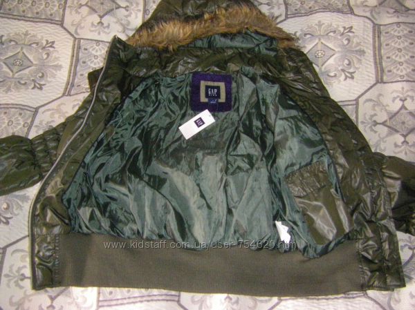 ХАКИ Стильная осенне-зимняя куртка GAP рост 146-152. Демисезон до 0 градусов. Очень теплая и легкая, верх из мягкой плащевой ткани, тонкий синтепон и подкладка. На рост 146 - 152. Капюшон не отстегивается.