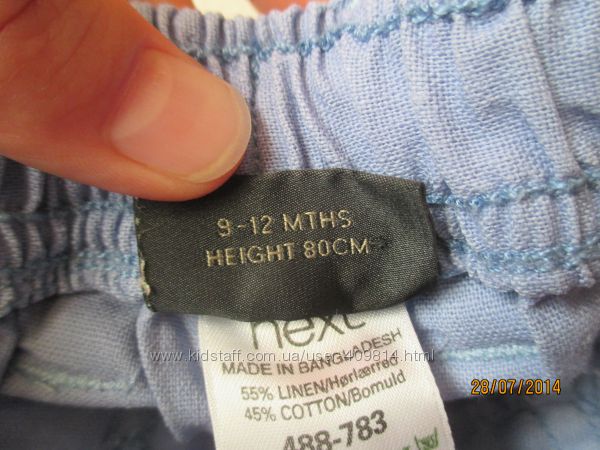 Штанці літні NEXT - 9-12 міс.(ми носили до 2 років) - унісекс. Є гудзички, можна робити бриджами. Легкі і практичні, якраз на літо, не жаркі, не парять. Колір - "під джинс".Склад тканини: 55% льон, 45% коттон.