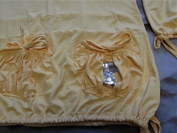 Яркая добротная трикотажная туника MOSCHINO (Турция)с капюшоном и длинным рукавом,два накладных кармана на завязках,вышивка пайетками,рукава и низ затягиваются тканевым шнурком. Цвет:желтый Состав трикотажа:90%-вискоза,10%-эластан (с холодящим эффектом ) Размер: 42/44 Замеры: ПОГ - 42 см (тянется до 46 см) рукав от горловины - 62 см ПОТ - 36 см ПОБ - 42 см длина по спинке - 73 см Состояние:нового Обмен,возврат: не предусмотрен Смотрите все мои объявления!