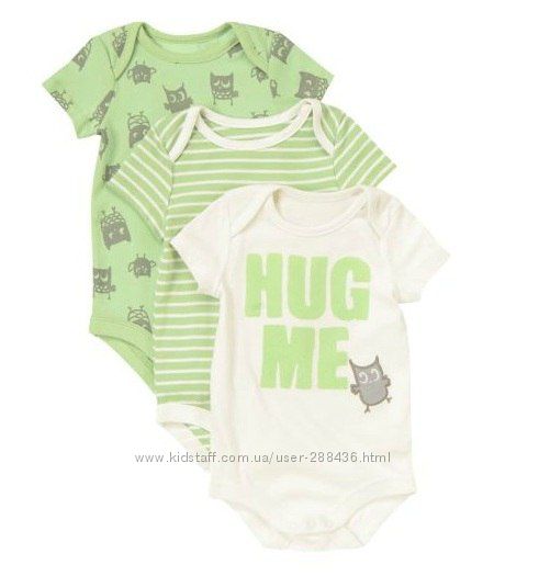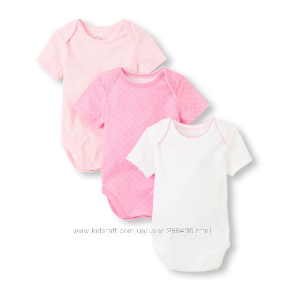 3) бодики с коротким рукавом. Изготовлены из 100% хлопка джерси. Сhildrensplace. Размер 9-12 мес. Цена 80грн один бодик. Остался белый