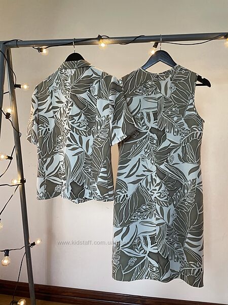 Костюм олива - піджак-блуза, сукня - 500Розмір - 48, UK 12, EU 40