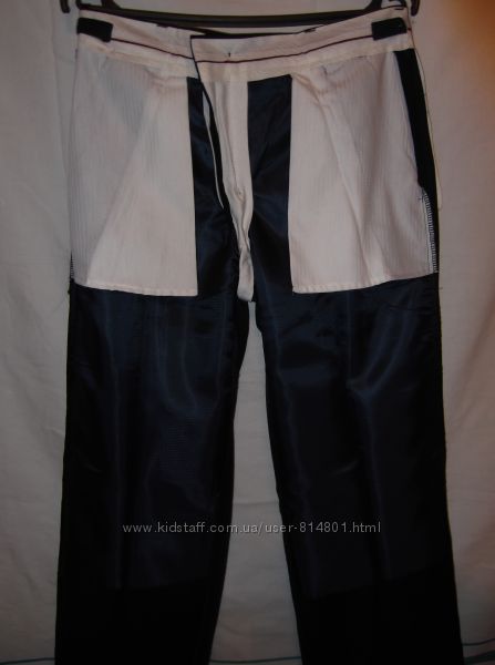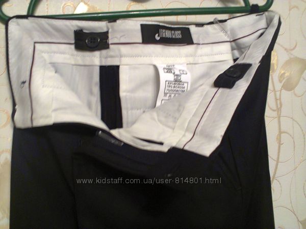 Модель брюк - современная не глубокая посадка, средней зауженности, со встроенной резиночкой с перестёжкой - пуговичкой в поясе, на подкладке ниже колена. Внутренние швы обработаны специальной тесьмой, гульфик полностью обшит спец-методом, на фото 6.