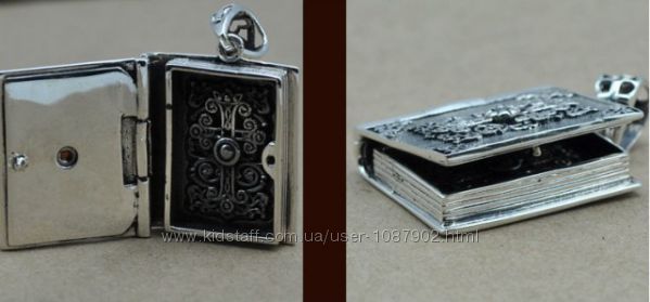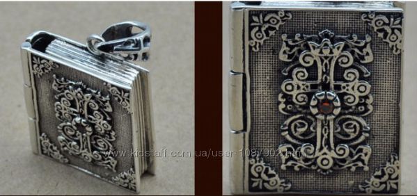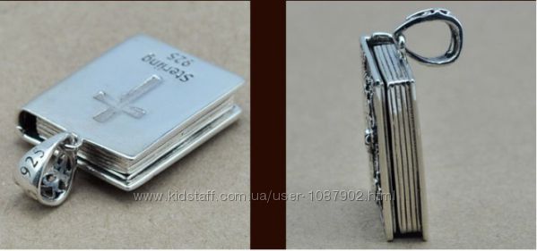 СТИЛЬНАЯ СЕРЕБРЯНАЯ ПОДВЕСКА В ВИДЕ БИБЛИИ С КРЕСТИКОМ (открывается).ПРЕКРАСНЫЙ ПОДАРОК!