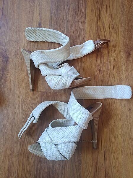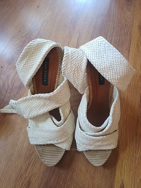 Летние Zara на высоком каблуке с застежкой на щиколотке- б/у (практически новые, одела 2 раза), -размер 39-40,