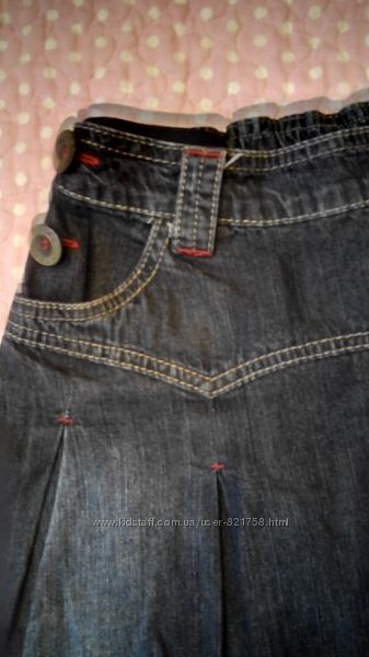 Джинсовая красивая юбочка со складками. На этикетке 128 рост на 8 лет. длинна 33, пояс регулируется.
