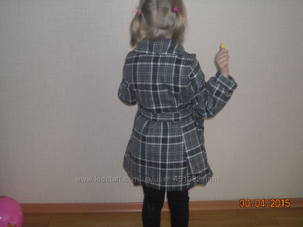пальтишко для девочки 3-4 лет. Утеплено тоненьким слоем синтепона.В отличном состоянии. Замеры: плечо - 7 см,длина рукава по внешнему шву - 38 см, внутреннему - 26 см, ширина под мышками - 32 см, ширина талии - 30 см, длина по спинке - 56 см.отправлю Новой или укрпочтой за Ваш счет