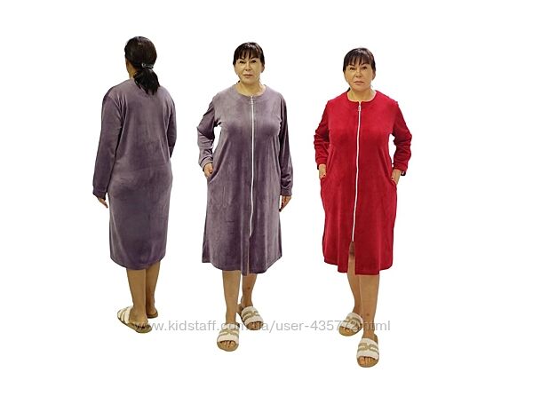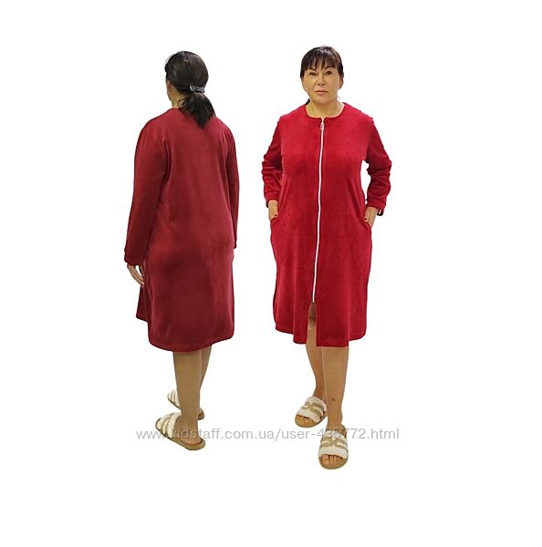 Красивий та якісний жіночий халат стане кращим подарунком як собі так і близькій людині, надзвичайно приємний до тіла й дуже гарно сидить по фігурі. Модель повномірна 62 розмір підійде на об"єм грудей до 140 см. З двома внутрішніми кишенями. Модель на блискавці. Тканина велюр плюш, фурнітура - блискавка металіка. Матеріал благородний не тільки зігріє, але й не буде парити - чудовий варіант на всі пори року. модельбільшеміре(дуже повномірна).Вартість та розмір: 52,54,56,58,60,62 - 565 грн