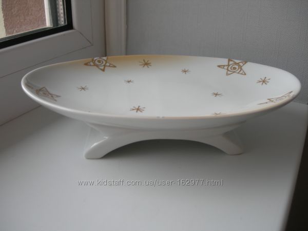 Высокая - высота 5 см, диаметр 21 х 14 см.