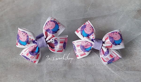 Фото 3 🌸 Peppa 🌸 Розмір резиночки 3,5см 🌸 Розмір бантика 7 см 💥Ціна 40 грн пара
