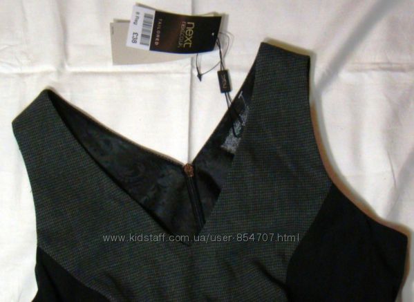 Платье Next.Платье сарафан на подкладке. Комбинированная ткань. Отрезное по талии. Юбка расширена книзу. Сзади застежка на молнии 38 см.