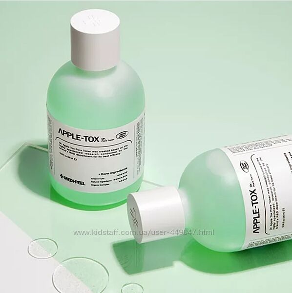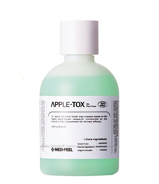 🔥 Пілінг-тонер із ферментованими екстрактами Medi-Peel Dr.Apple-Tox Pore Toner 500 мл 🔥Тонер містить 91% натуральних компонентів, має слабокислий pH 5.5, м´яко відлущує ороговілі клітини, вирівнює мікрорельєф і тон шкіри, регулює вироблення себуму, звужує пори, тонізує, підвищує еластичність та пружність.