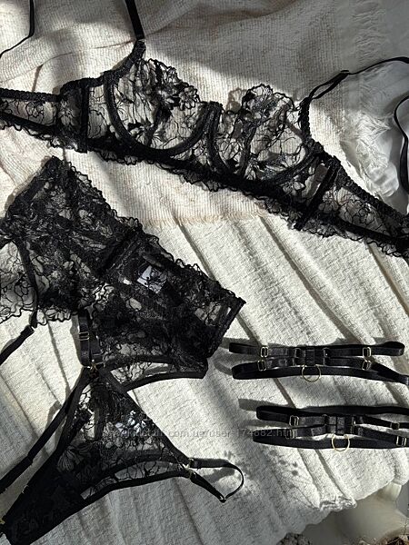 ✨ Ефектний мереживний комплект білизни ✨Розкішний чорний сет, що поєднує в собі елегантність та сексуальність.