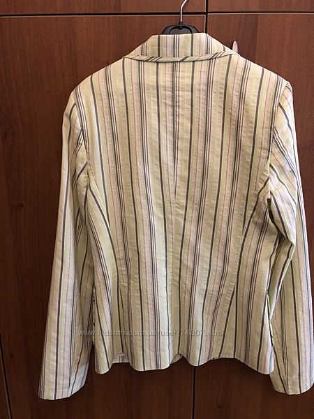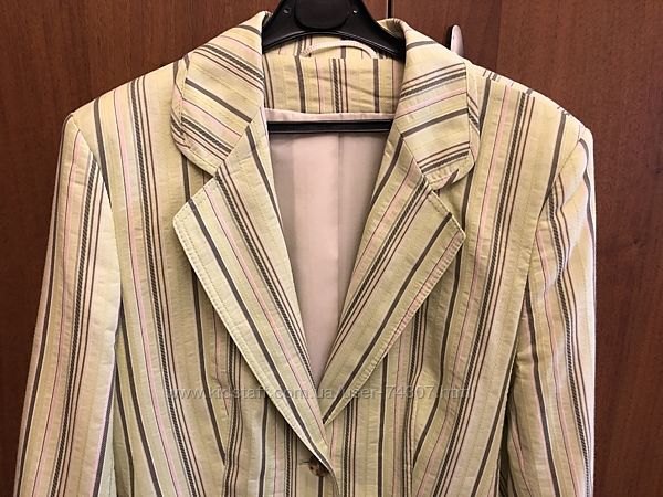 Универсальные пиджаки на подкладке, производство Германия. Приталенный крой. Состоянии новых. Гармонично смотрятся, как в деловом стиле, так и в стиле кэжуал. Очень легко комбинируются с любой одеждой. 1. Пиджак бежевого цвета. Основной цвет нежно молочный, на фоне которого текстурное переплетение нитей бежевого цвета. Европейский размер 36-38, на наш 42-44. Замеры: плечо 13 см + длина рукава 63 см, ПОГ 44,5 см, длина 67 см, ПОТ 38 см. Пиджак отлично смотрится с юбками, брюками, джинсами, прекрасно дополнит практически любое летнее платье. Цена 130 грн.2. Пиджак в цветную и текстурную полоску, сочетание двух оттенков нежно салатового, розового и серого цветов. Европейский размер 36-38, на наш 42-44. Очень стильно смотрится. Цена 130 грн.