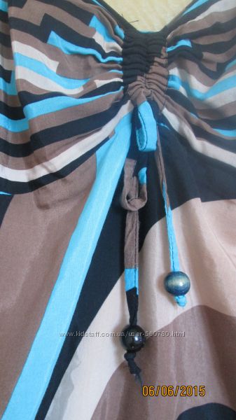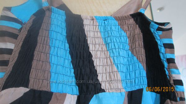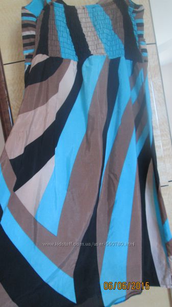 В отличном состоянии,без изъян. Ткань натуральная. Спинка регулируется на резинке. Застёгивается сбоку вверху на молнию.Имеется подъюбник-не просвечивается. Цвет насыщенный, всё состояние нового.Длина с брительками-90см