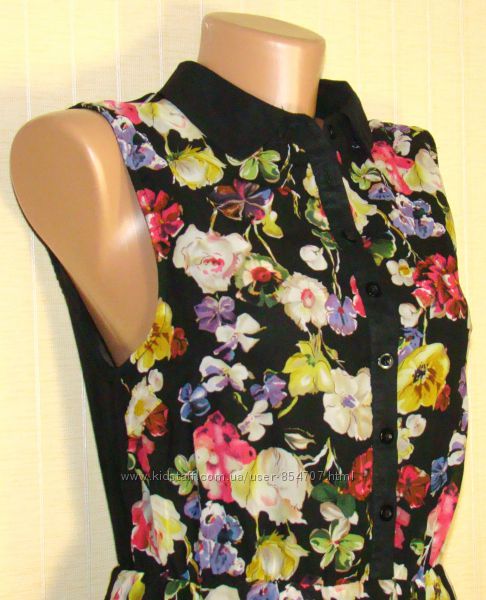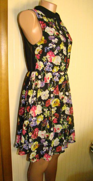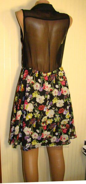 Платье AX (Размер 46 (М))Платье женское фирмы AX. Изготовлено из тончайшей цветной ткани на подкладке, спинка, воротник, планка застежки выполнена из однотонной ткани.