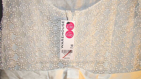 Платье гипюровое нарядное айвори Warehouse (Размер 46, М)Милое, нарядное гипюровое платье на подкладке цвета айвори - шампань.