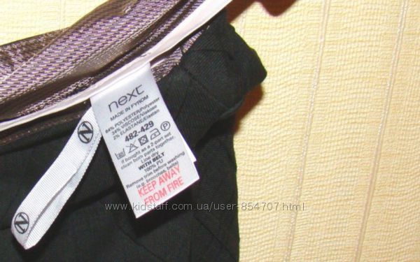 Брюки женские NextКлассического покроя. Цвет черный. в еле заметную клетку. Пояс переходит в отделку в виде защипов на уровне карманов.