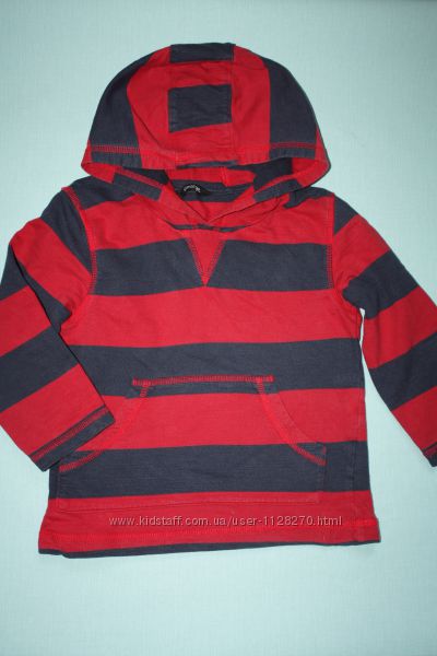 фото 5 Котоновый красно-синий в полоску батник-худи с капюшоном ф. Georgt на ребенка 2/3лет в хорошем состоянии,длина-40,плечи-29,рукав от плеча-31,ширина от подмышек-32