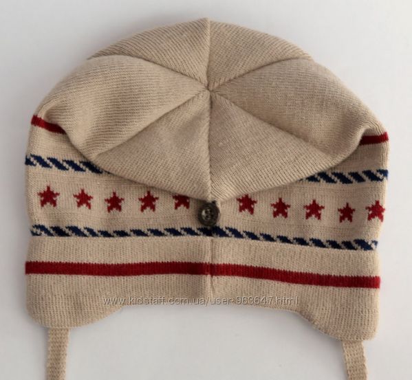 ф.4-5 Звездочки. Шапка хлопок 1 слой. 1-4 года (Обхват головы 46-52 см). Свойства: Хорошо тянется в ширину и глубину. По бокам есть небольшие "ушки" и завязочки. Завязочки при желании можно отрезать. Сзади шапка закреплена с помощью пуговицы. Пуговицу можно перешить, таким образом увеличить или уменьшить глубину шапки. Связана в 1 слой. На отвороте (лоб, уши, затылок) 2 слоя. Идеально подходит для осенне-весенней погоды. Состав: Хлопок 60%, акрил 40% Цвет: как на фото Цена: 55 грн.