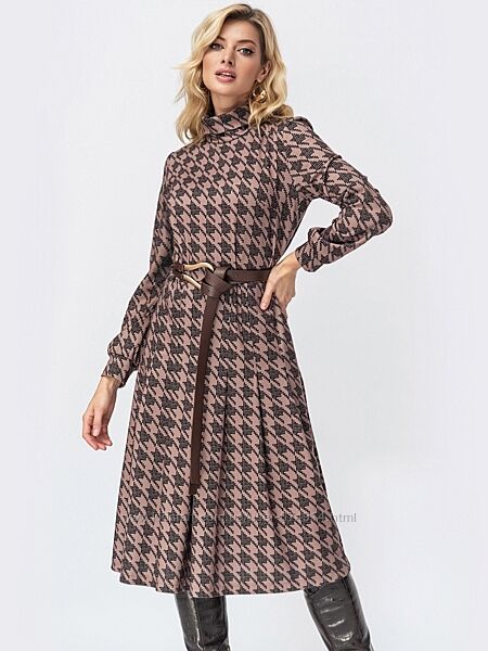 Трикотажное платье-миди с принтом и высоким воротникомПроизводитель: Украина