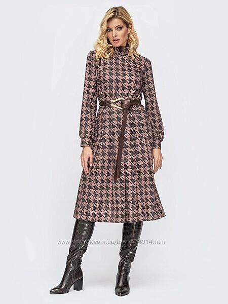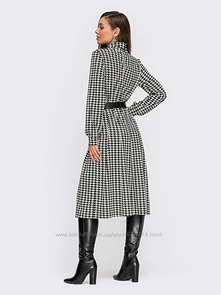 Подробное описание: трикотажное платье-миди с принтом и высоким воротником