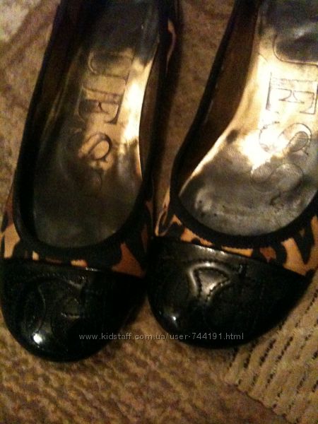 Балетки оригинал ,носочек лаковый на нем значек фирмы,сами балетки из ткани на них так же есть логотип фирмы.В хорошем состоянии,только стелечка потерлась ,можно поменять ,а можно и так ходить