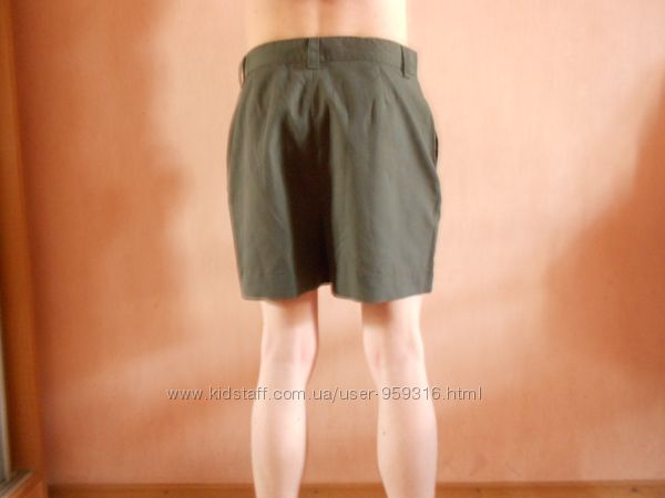 За меры шортов в свободном состоянии- талия 76 см (ПОТ 38 см), на бедра 94-100 см (ПОБ 51 см) , длина наружная 43 см, длина шаговая 10 см, ширина штанины сверху 62 см, внизу 62 см, посадка впереди 3 0 см, сзади 40 см. Есть шлицы под ремень, по бокам 2 кармана . Цена 140 грн