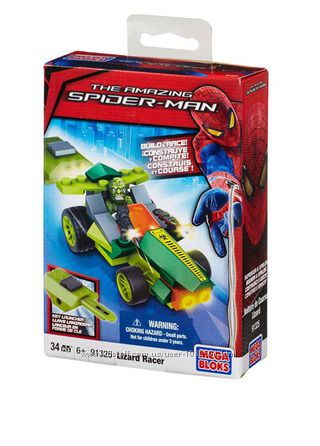 Распродажа - Транспортное средство Ящера с пусковым устройством ( 34 детали) от Mega BloksСборное транспортное средство с пусковым устройством, а также голова Ящера. Соберите автомобиль, вставьте сзади пусковое устройство и запустите его в головокружительное путешествие. Игрушка создана по мотивам фильма «Новый Человек-паук» (Spider-man 4).