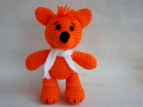 Пряжа - детский гипоаллергентный акрил; наполнитель- холлофайбер.Холлофайбер - это силиконизированое полиэфирное волокно, скрученное в маленькие пружинки и имеющие форму шариков. Холлофайбер долго держит форму.