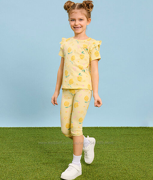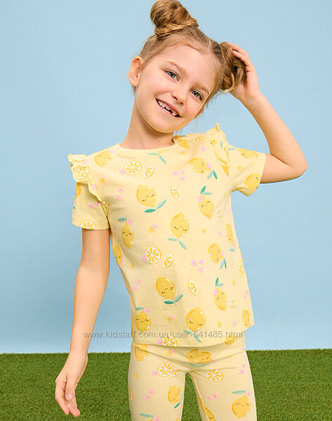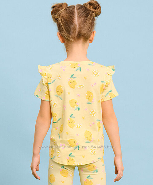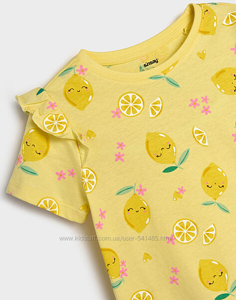 Футболка для дівчинки з принтом із м´якого бавовняного трикотажу. По проймам оздоблення оборочками. З колекції дитячого одягу польського виробника Sinsay.Розмір у наявності: 9-10 років, зріст 140 см