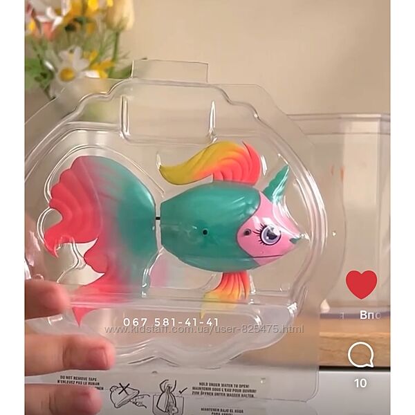 Особливістю є те, що пластиковий футляр з іграшкою, що знаходиться всередині, при зануренні у воду розкриється, і рибка ефектно випливе назовні, виляючи хвостом!