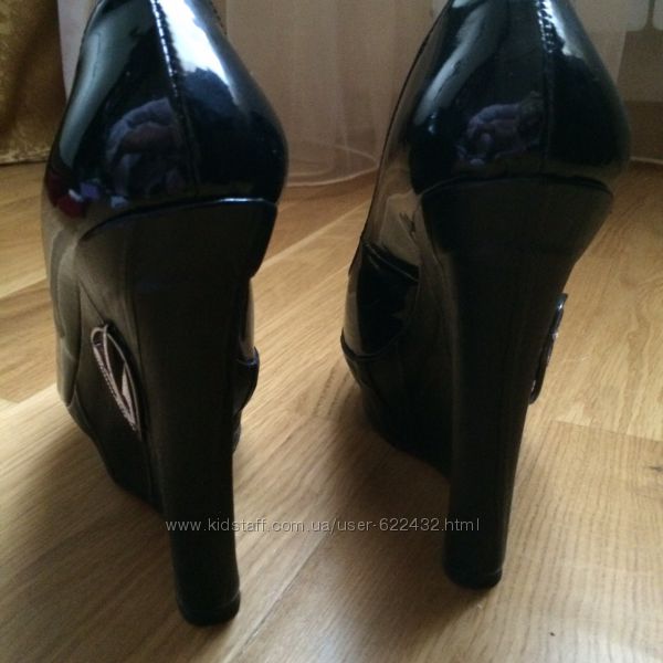 Продам шикарные черные туфли из натуральной лакированной кожи,на танкетке ,открытый носок.на танкетке декор в виде броши из камней(все камни на месте ).По стельке 24,5см,танкетка 14см.Обувала пару раз .В отличном состоянии(нет ни зарапенки)Другие объявления продавца