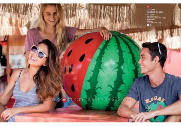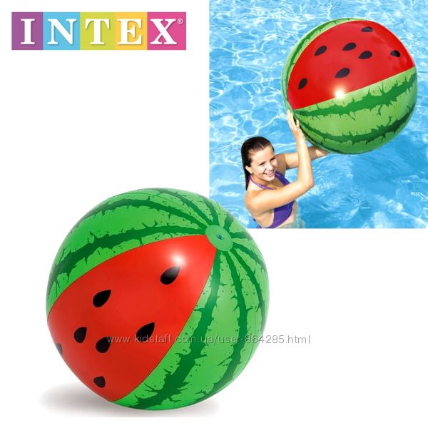 ФОТО 1-4. Мяч пляжный Intex 58071 "Арбуз" (107 см)Реалистичный дизайн арбуза