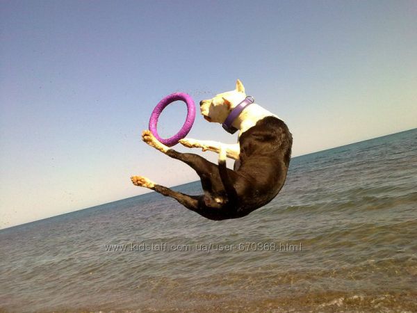 Тренировочный снаряд Пуллер представляет собой 2 кольца (кроме модели макси – одно большое кольцо), изготовленных из специального легкого, не тонущего в воде материала, который не травмирует зубы и дёсна собак.Пуллер имеет форму круга, что позволяет ему катиться (палку так не бросишь), и благодаря этому собака с еще большим азартом преследуем его.