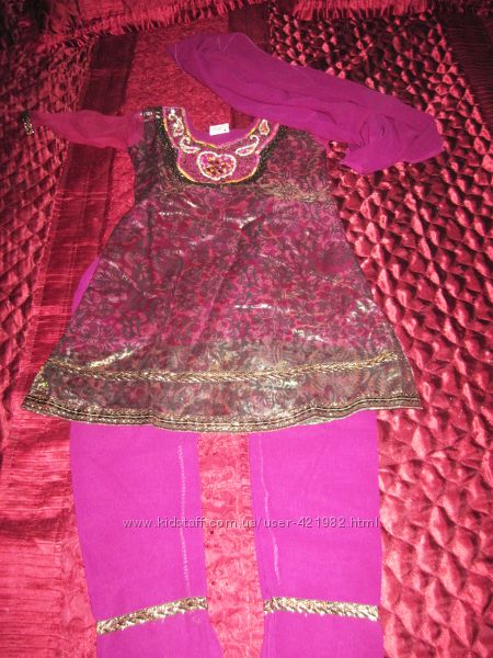 Костюм из Шри Ланка.. сделан в Индии тоит из платья на фиолетовой подкладке, верх синтетика, рукав прозрачный фиолетовый, кайма по низу платья и рукава золотистая, вокруг шеи и ниже аппликация из множества блесток. Размер 26, MT . Punjabi Suits . Chudidar . От плеча до плеча 32 см, плечи 7,5 см, длина рукава 38 см,, длина платья 65 см, талия 32 см, подмышки 34 см.