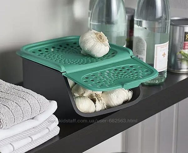 Контейнер «Свіжість» призначений для зберігання невеликих за розміром продуктів: цибулі, часнику, ківі, авокадо, помідорів чері, моркви та інших овочів і фруктів