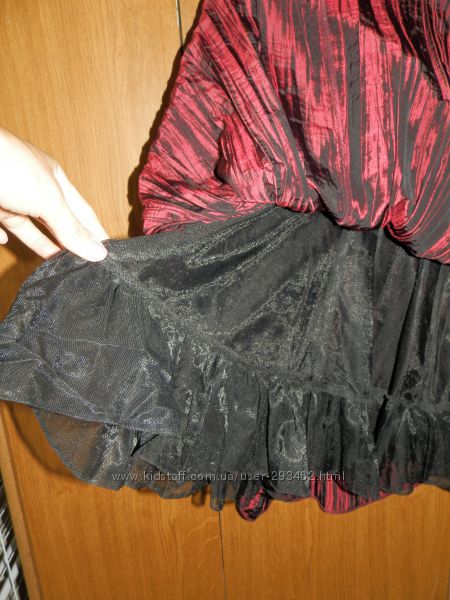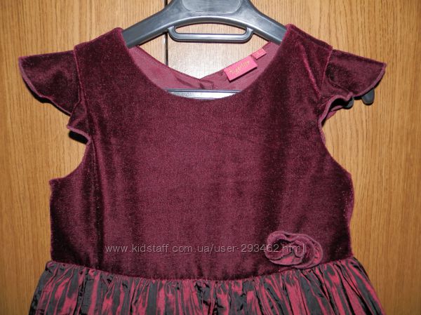 Продам нарядное платье Tigerlily от Debenhams р.6 (на р.116-128) б/у в отличном состоянии. Верх - велюр, верх юбки - тафта-жатка, фатиновый подъюбник с оборкой. Ширину можно регулировать сзади лентой.Замеры: длина от плеча 75см, ПОГ 31см.