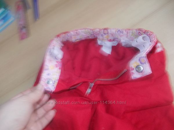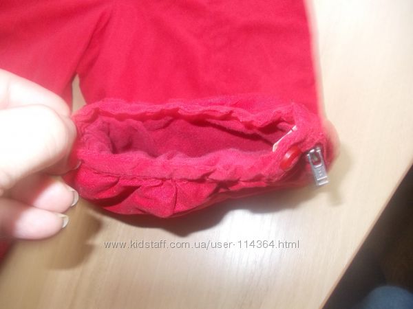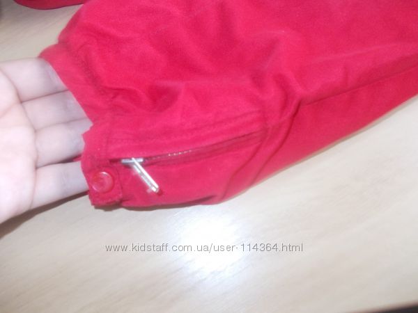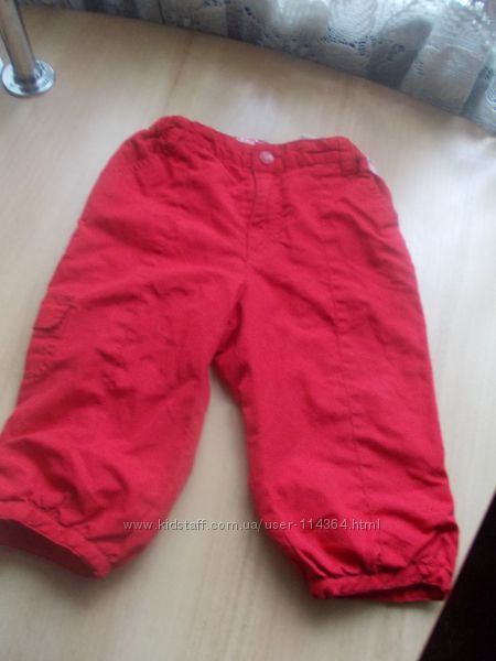 Наши брючки H&M, яркого красного цвета. Размер 9-12 мес. Талия регулируется резиночкой с пуговицами, внизу на штанинах замочки с пуговицами. Внутри хлопковая трикотажная подкладка. Состояние хорошее.Замеры: